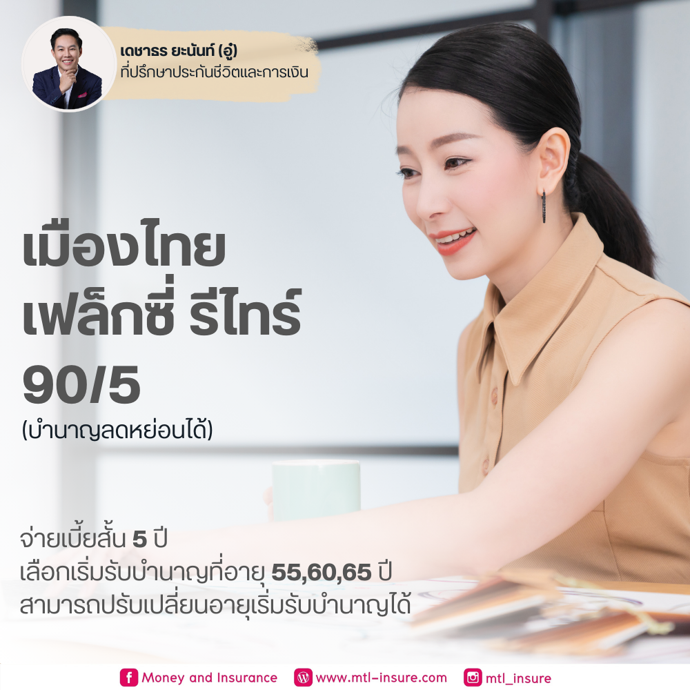 จำนวนผู้ชม : 2,471 ครั้งเฟล็กซี่ รีไทร์ 90/5 ดี 55, ดี 60, ดี 65 (บำนาญแบบลดหย่อนได้)