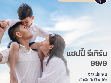 อายุรับประกันภัย : 30 วัน – 80 ปี ระยะเวลาคุ้มครอง : ครบอายุ 99 ปี ระยะเวลาชำระเบี้ย : 9 ปี การซื้อประกันชีวิตคือการซื้อความสบายใจให้กับตัวเราเอง และซื้อความมั่นคงให้กับคนที่เรารักเท่าชีวิต รายละเอียดแผน จ่ายเบี้ยเพียง 9 ปี คุ้มครองยาวถึงอายุ 99 ปี รับเงินคืนทุกปีๆละ 9% ตั้งแต่ปีที่ 1 ถึงอายุ 98 ปี ครบสัญญารับเงินก้อนตอนอายุ 99 ปี คุ้มครองชีวิตสูงสุดถึง 900%* หากเกิดเหตุการณ์ไม่คาดคิด เสียชีวิตจากอุบัติเหตุ รับความคุ้มครองเพิ่มเป็น 2 เท่า สูงสุดถึง 1800% ของทุนประกัน ลดหย่อนภาษีได้ (ตามสัดส่วนของเบี้ยประกัน) จ่ายเบี้ยผ่านบัตรเครดิตได้ เหมาะสำหรับ พ่อแม่ที่อยากทำประกันชีวิตเป็นมรดกของตัวเอง ทิ้งเงินก้อนหรือเงินค่าจัดงานศพไว้ให้ลูกเมื่อตัวเองเสียชีวิต ลูกๆ ที่ต้องการทำประกันชีวิตให้พ่อแม่ […]