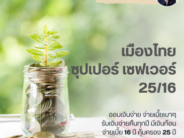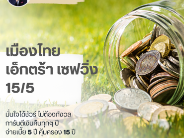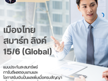 อายุรับประกันภัย : 30 วัน – 80 ปี ระยะเวลาคุ้มครอง : 15 ปี ระยะเวลาชำระเบี้ย : 6 ปี การชำระเบี้ย : รายปี (ครั้งเดียว) ทั้งที่รู้ว่าบั้นปลายชีวิตต้องใช้เงินไม่น้อย แต่ทำไมยังผัดวันรอคอย ไม่เริ่มต้นเก็บออมสักที รายละเอียดแผน ประกันชีวิตทางเลือกใหม่ที่ตอบโจทย์ความต้องการได้แบบ 3 in 1 ในกรมธรรม์เดียว ทั้งในส่วนของความคุ้มครองชีวิต การันตีเงินจ่ายคืนระหว่างสัญญา และโอกาสรับผลตอบแทนจากการลงทุนในรูปของเงินปันผลผ่านดัชนี GS Momentum Builder® Multi-Asset 5S ER ให้คุณมั่นใจได้ในทุกสภาวะเศรษฐกิจ โอกาสลงทุนในดัชนีระดับโลก เพื่อสร้างผลตอบแทนที่ดี ประกันชีวิตรูปแบบใหม่ ที่ไม่ได้ล็อคอัตราผลตอบแทนเหมือนประกันชีวิตรูปแบบเดิมๆ แต่เปิดโอกาสรับผลตอบแทน(Upside gain) ผ่านดัชนี GS Momentum Builder® Multi-Asset 5S ER การันตีเงินที่จ่ายไม่สูญหาย มั่นใจได้ว่าเบี้ยประกันภัยที่จ่ายจะยังอยู่ครบ เมื่อครบกำหนดสัญญา การันตีมีเงินคืนแน่นอน รับเงินคืนทุกๆ 2 […]