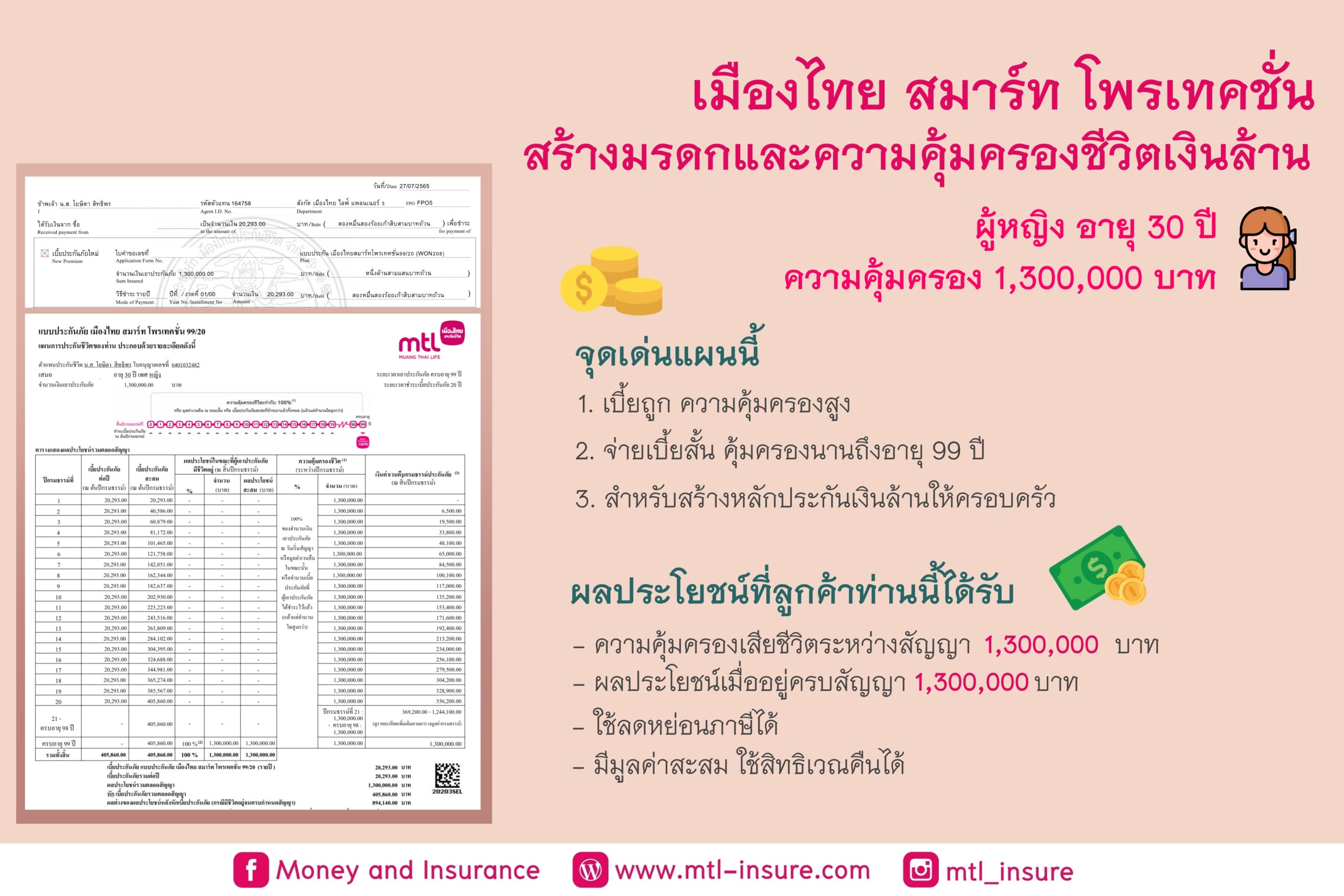 อนาคตเริ่มต้นจากความมั่นคงในวันนี้ ตอบโจทย์ทุกความต้องการด้วยการดูแลจากเมืองไทยประกันชีวิต ช่วยให้คุณสามารถวางแผนรับมือแม้ในเรื่องไม่คาดฝัน มั่นใจและอุ่นใจว่าหลักประกันที่เตรียมไว้จะสามารถส่งต่อ เพื่อสร้างรอยยิ้มและความสุขให้กับคนที่คุณรักตลอดไป